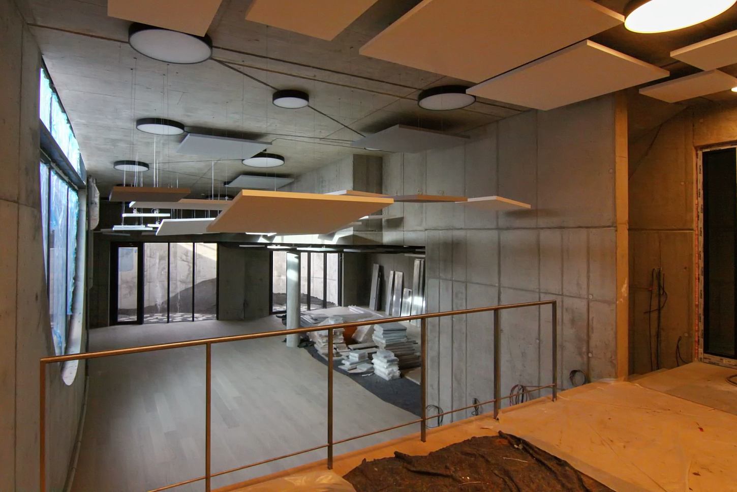 Interiér knihovny už zcela odráží její zaměření – všude, kam se podíváte, rostou regály. Všechny obklady a dlažby jsou hotové, dřevěné podlahy položené a výtah je plně funkční. V kotelně se dokončuje instalace topné technologie včetně plynového kotle. „V soutěsce se dobrušují a vyhlazují povrchy sádrokartonových stěn a bude se malovat,“ doplnil Bičík.