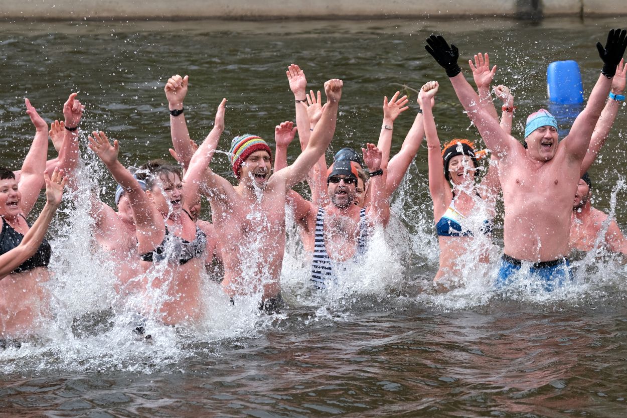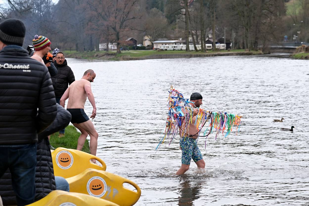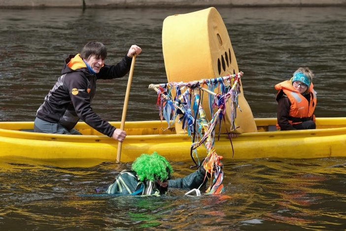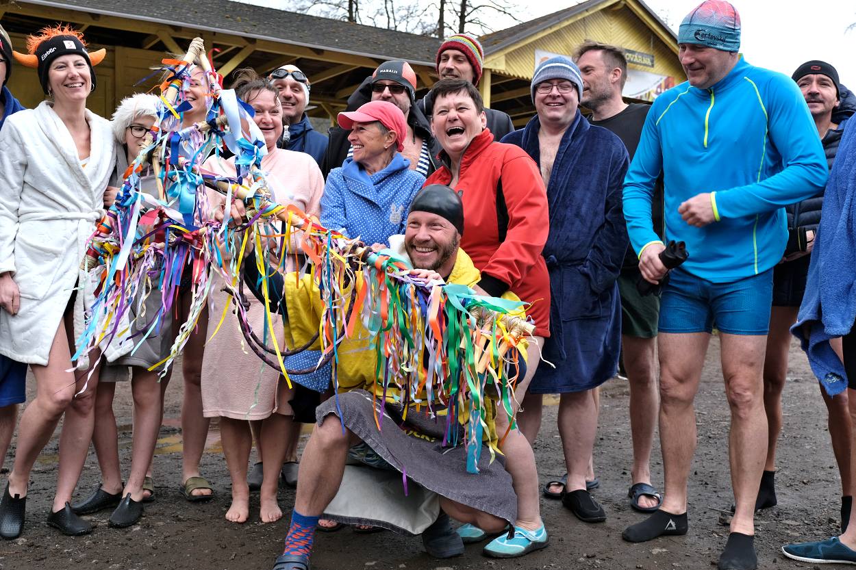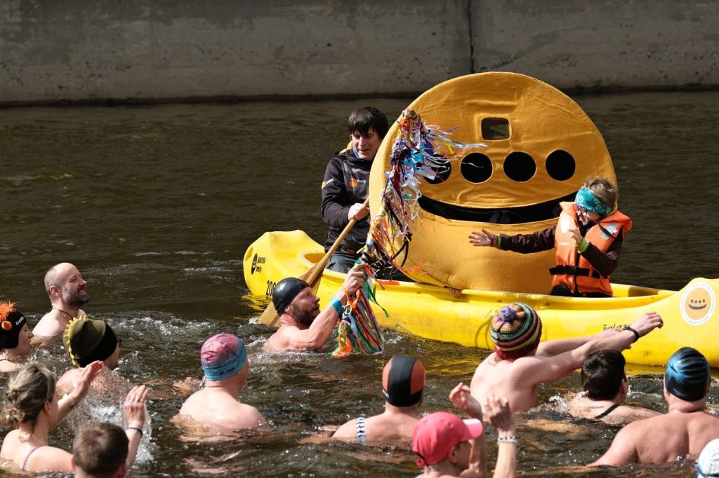 Parta otužilců předala symbolický klíč od Jizery vodákům. Nová sezona může začít. (Teplota vody v řece byla v Malé Skále v sobotu 9. dubna pouhých 4,4 ⁰C!)