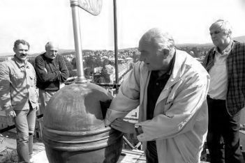 Foto týdne 7.4.2017 | 4 242 přečtení 0 Turnov, září 1992 Vložení aktuálních dokumentů o životě města a jejich následné zatavení do věžičky nově opravené radnice, vpravo místostarosta Josef Kunetka, v…