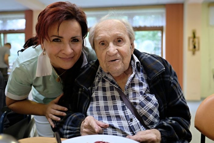 Nejstarším obyvatelem domova důchodců je legendární turnovský ochotník a kynolog Miloslav Holas (ZDE). Na podzim mu bude 98 let. Je stále v dobré kondici i náladě (na titulním snímku je s jednou z pečovatelek).
