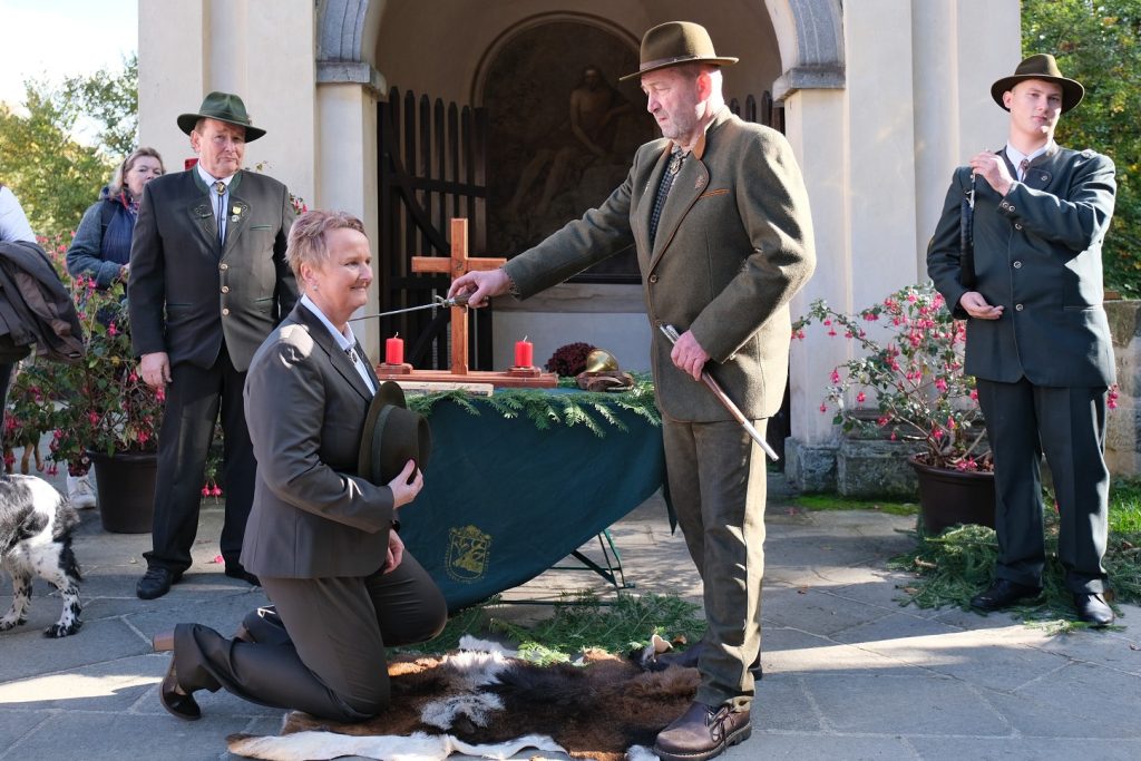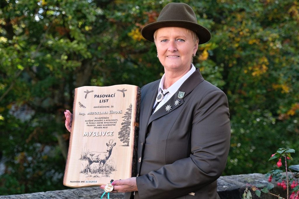 Na myslivce byla v sobotu 12. října pasována Miroslava Šírová z Přepeř. Jak uvedla, v poslední době přibývá žen i v tomto oboru, který byl dříve doménou mužů. „U mě to bylo jednoduché, myslivcem je můj manžel, ráda s ním chodím do lesa, mám ráda ten klid, vyčistím si hlavu, roky také pomáhám v Mysliveckém sdružení Valdštejn, takže problematiku znám, máme tam své přátele, pořádáme různé akce. Myslím, že je to dobrá náplň volného času,“ uvedla Šírová. Ta už má za sebou i první ulovenou trofej – srnce.