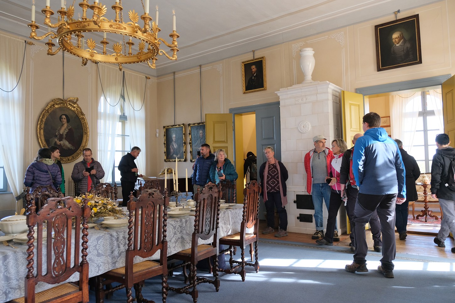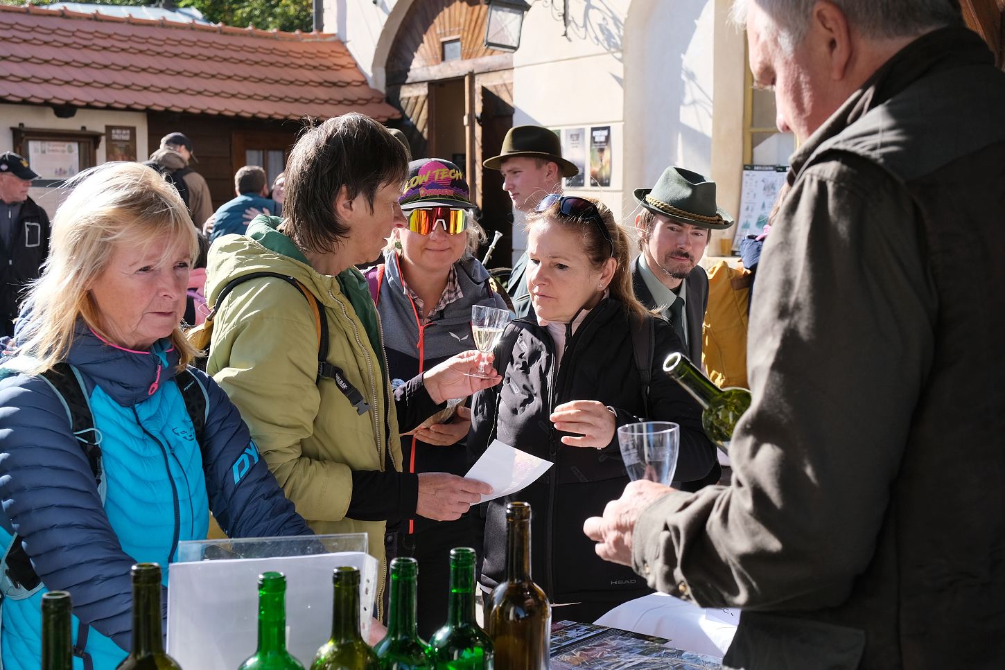 V sobotu panovalo mimořádně příjemné slunečné počasí, konalo se zde setkání zájemců o myslivost, navíc v pátek byla na Seznamu.cz zveřejněna mezi hlavními zprávami pozvánka ve smyslu, že na nejkrásnější hrad Českého ráje je v sobotu vstup zdarma. To ostatně vysvětluje, že mezi stovkami návštěvníků byli místní naprosto v menšině, už třeba podle poznávacích značek zaparkovaných aut.