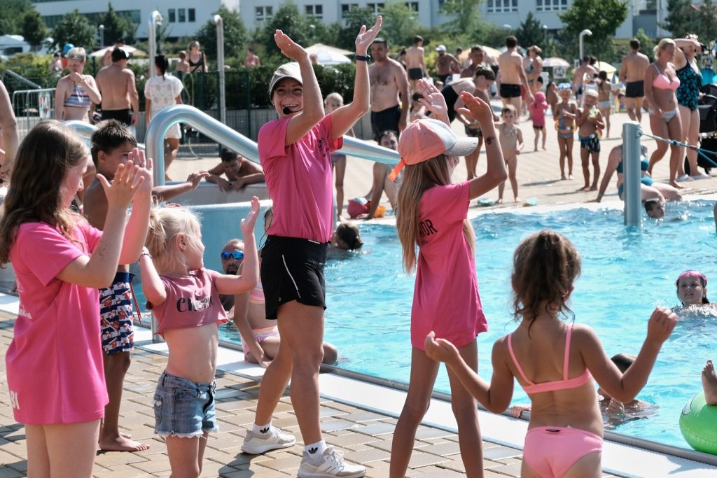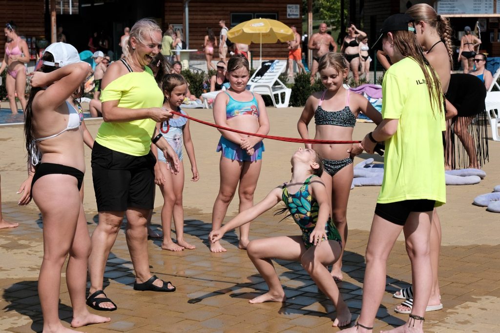 V neděli 20. srpna za třicetistupňového vedra připravila Taneční a pohybová škola ILMA Ilony Šulcové v Maškovce komponované odpoledne. Zájemci viděli profesionální taneční vystoupení, mohli si společně s animátorkou zacvičit přímo ve vodě, připraveny byly soutěže pro děti. Sezona na koupališti pokračuje dál… (Na titulním snímku jedna ze soutěží.)