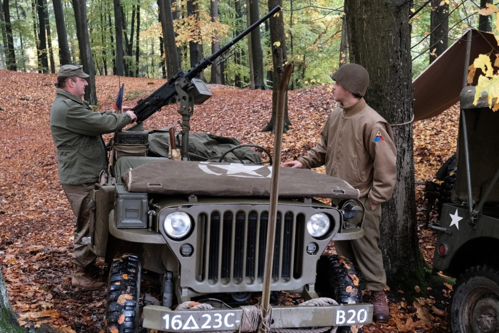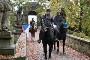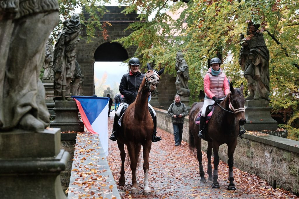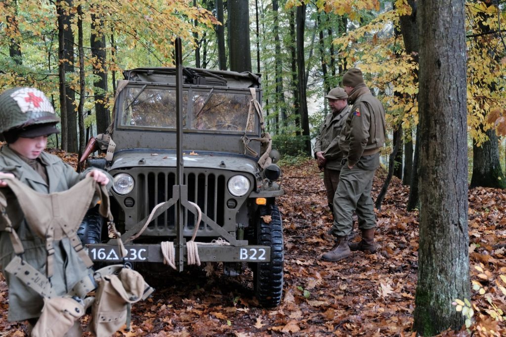 Příjemná atmosféra vládla i v předhradí, kterým projížděla Hubertská jízda s více než čtyřmi desítkami koní, a také zde byla připravena prezentace amerických veteránských jeepů.