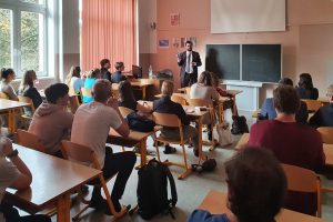 Na jednu z otázek, jak se stal David Maxa rabínem, vyprávěl svůj životní příběh. David Maxa také studentům vysvětlil, co obnáší povolání rabína v dnešní době i v kontextu historie.