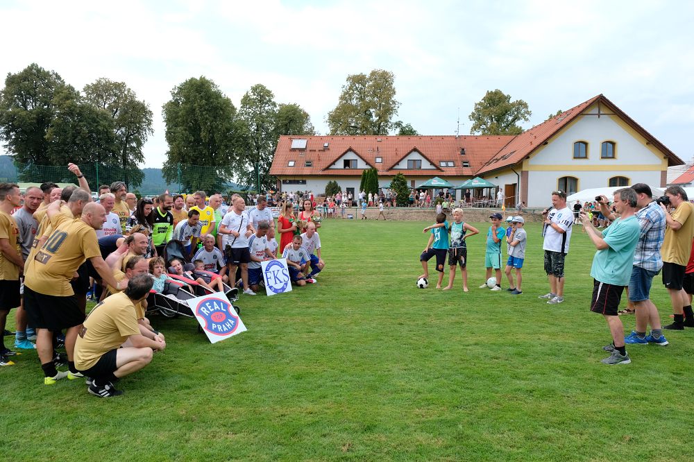 Proti TOP Realu Praha, za který nastoupili známé osobnosti jako např. sportovní komentátor Jaromír Bosák, herci Ondřej Hampl a Leoš Noha z „Okresního přeboru“, David Suchařípa, kuchař Jiří Babica nebo fotbalový exligista a expert Luděk Zelenka, kterého doplnil ještě sparťan Lukáš Zelenka, hráli karlovičtí borci let dávno minulých – bratři Jan a Ondřej Staňkovi, Karel Karásek, Ondra Knobloch, Jirkové Rakouš a Šulc, Míra Kobrle a Olda Lupač, doplnění o čekatele, kteří vesměs zažili divizní éru FKS, jako Jiří Pavlíček, Jára Mencl, Aleš Švarc, Lukášové Bakeš a Tausig, Jan Šritr, Vláďa Kněbort a Jarda Rympler…