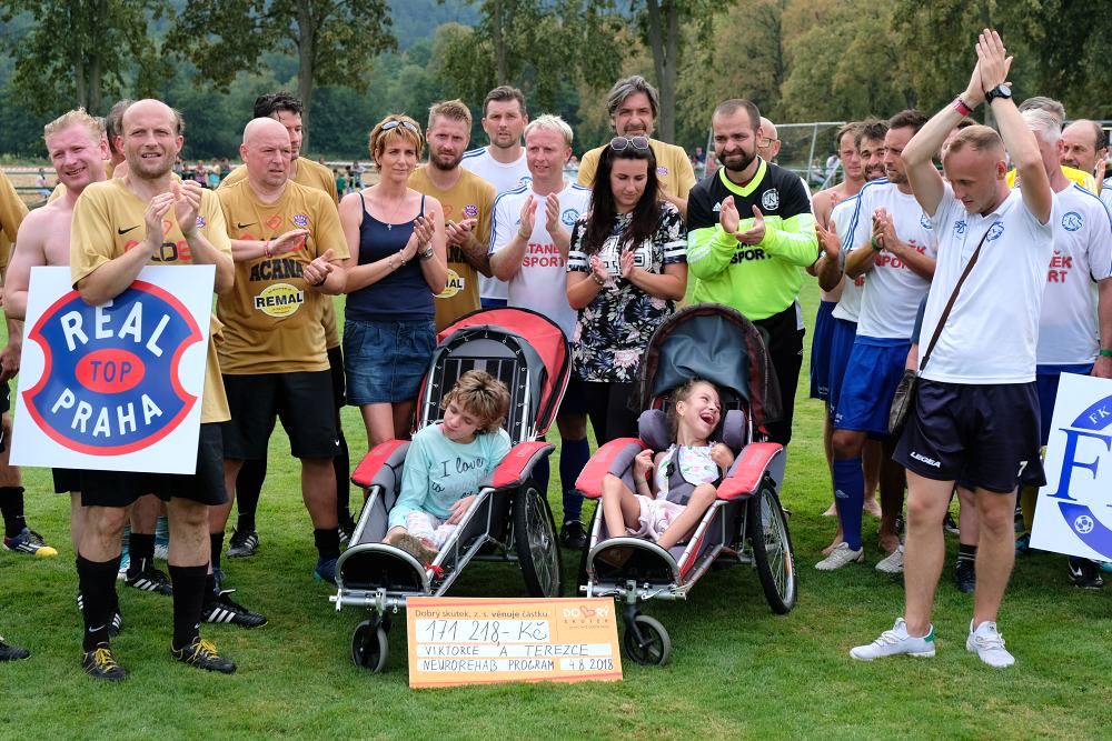 Pestrý program, bohaté občerstvení, dobrý servis a přátelská atmosféra, to byly hlavní atributy sobotní Benefice pro Viktorku a Terezku. „Pro děti jsme připravili skákací hrad, střelnici a další kratochvíle. Dospělí přišli převážně kvůli utkání našich legend s osobnostmi sportovního a kulturního života. Nemalá část návštěvníků si vychutnala také hudební část dne, zajištěnou s námi spřátelenými kapelami. Líbila se také pěnová párty a úspěch měly i různé soutěže o zajímavé ceny od našich četných sponzorů, kterým bych chtěl tímto za klub ještě jednou moc poděkovat. Dík patří i té téměř tisícovce lidí, co na naši akci zavítali,“ prohlásil za FKS kapitán A-týmu Marek Kroupa, jenž měl organizaci dne takříkajíc na svém hodně propoceném triku.