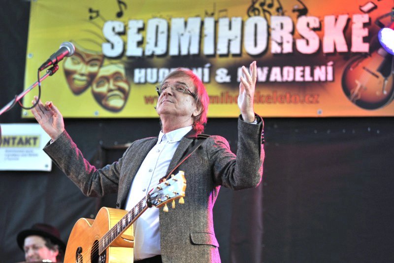 Úderem osmé hodiny přišla na pódium kapela v čele s Meky Žbirkou a koncert mohl začít. Bylo až neuvěřitelné, že sluníčko dokázalo svítit do té doby, dokud nezapadlo za kopce. Naštěstí nepřišel žádný dešťový mrak, který by dokonalý podvečer zkazil. A jaký koncert byl? Pokud se člověk zaposlouchal do rozhovorů návštěvníků, ze všech stran slyšel slova jako super, krásná atmosféra, výborný zvuk, příjemný zážitek… A já dodávám, že to bylo opravdu báječné. Meky s kapelou zahrál všechny známé písně jako Biely kvet, Múr našich lások, Balada o poľných vtákoch, 22 dní, Atlantída… Dvě písně dokonce za doprovodu zpěvačky Marthy (například duet Čo bolí to prebolí) a na své si přišli i fandové seriálu Ordinace v růžové zahradě. Celý koncert měl výjimečnou atmosféru, kterou tvořil hlavně Meky, a to nejen svým naprosto bezchybným zpěvem, ale i humorem sobě vlastním. Anglického gentlemana v sobě opravdu nezapře. Například když při neutichajícím potlesku pronesl větu: Děkujeme, jsme zvyklí! A takových hlášek bylo během koncertu mnohem víc. Kdo do Sedmihorek dorazil, odnesl si kompletní kulturní zážitek, ze kterého bude určitě ještě dlouho čerpat pozitivní energii v následujících zamračených dnech. A ani bych se nedivila, kdyby se ještě v příštím týdnu linula nad Turnovskem ozvěna Mekyho písniček.