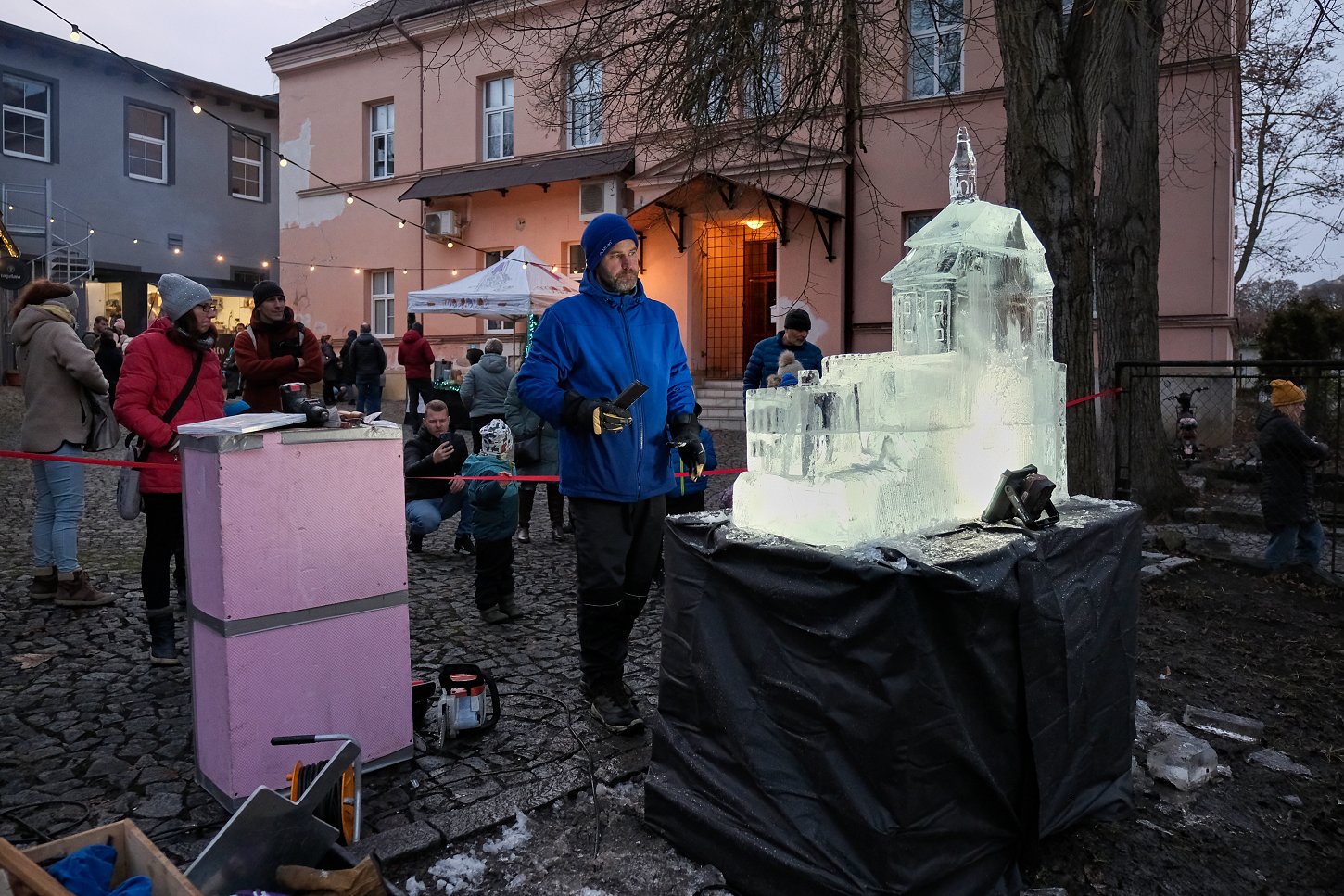 „Replika hradu Valdštejna je v podstatě poslední větší věcí, kterou letos dělám. Předvánoční období je vždy poměrně hektické – dělal jsem ledové sochy andělů ve Zlíně a v Jihlavě, kde kromě městského znaku vznikla i ledová brána do města, pro Českou Kamenici jsem vytvořil sochu Panny Marie s Ježíškem, kromě toho jsem také absolvoval několik firemních akcí, na nichž mimo jiné vznikl z ledu Karlův most,“ vypočítává závěr roku ze svého pohledu sochař Marian Maršálek, který ve dvoře zmrzlinárny Togelato v Nádražní ulici vytvořil ledovou sochu hradu Valdštejna. V sobotním odpoledni 20. prosince se sem během dne přišly podívat desítky lidí. A protože nadcházející počasí by se mělo pohybovat kolem nuly, je pravděpodobné, že tato instalace vydrží několik dnů. Večer bude vždy barevně nasvícena.
