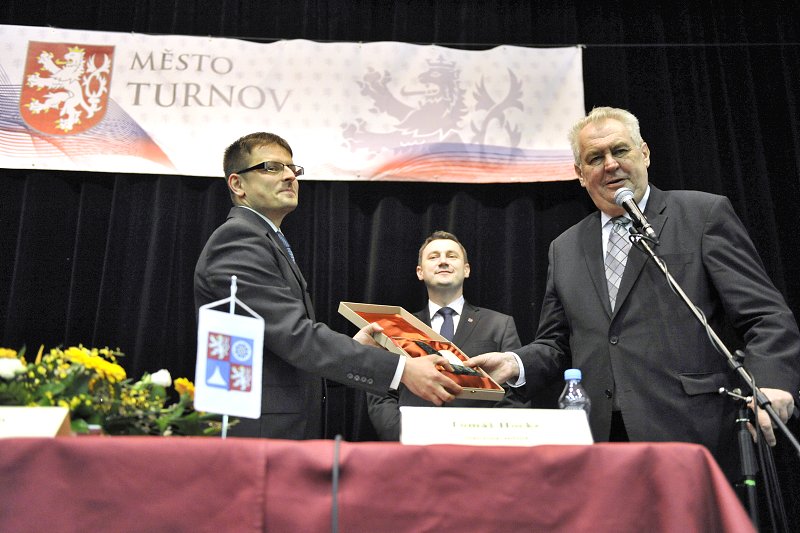 V rámci třídenní návštěvy Libereckého kraje navštívil prezident Miloš Zeman Turnov ve čtvrtek 26. března. Před půl jedenáctou dopoledne přijel do areálu firmy Kamax na Vesecku, kde se setkal s vedením firmy i se zaměstnanci, poté se zastavil na radnici, kde pohovořil s vedením města a se zastupiteli, návštěvu ukončil zhruba půlhodinovým setkáním s občany na Střelnici. Tady mu byla předána tzv. Turnovská výzva (ZDE) zdejších zastupitelů a proběhla také zajímavá diskuze, kterou jsme pro čtenáře TvA zaznamenali a její souhrn přineseme v nejbližší době.