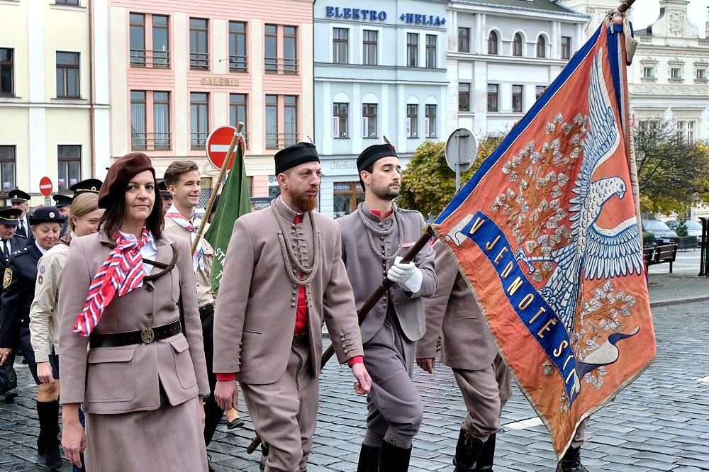 Hasiči, sokolové, skauti, koně a kočáry selské jízdy. Dobové uniformy, historické prapory, dechovka Turnovanka. To bylo zahájení oslav svátku 28. října v Turnově. I přes nepřízeň počasí si stoleté výročí republiky v neděli po poledni přišlo na náměstí Českého ráje připomenout víc než sto lidí. Ti vyslechli krátké proslovy starosty města a zástupců jednotlivých organizací, které stály u vzniku našeho samostatného státu.