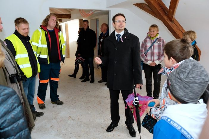 Poté slavnostní průvod prošel Skálovou ulicí až k sokolovně. Desítky lidí využily možnosti podívat se do právě dokončované přestavby bývalého Skálova „sirotčince“, ze kterého za více než 60 milionů korun vzniká nový městský úřad. Soustředěny sem budou odbory úřadu sídlící v domech u muzea ve Skálově ulici.
