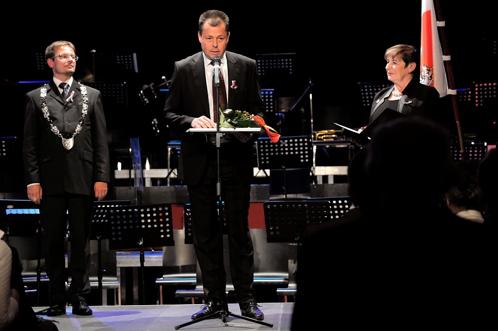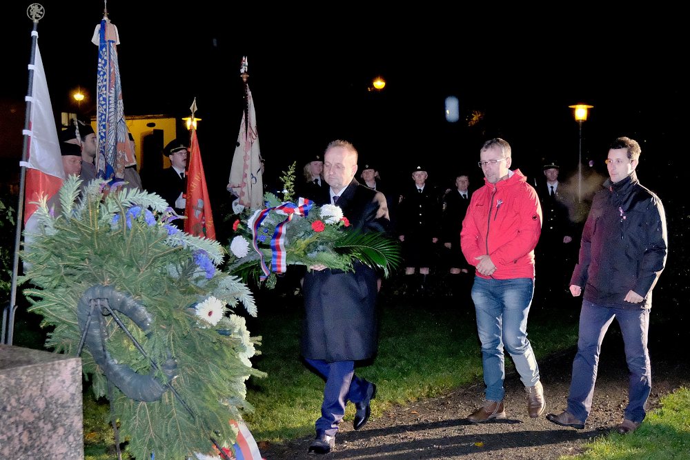 Ke slavnostním chvílím v Turnově již neodmyslitelně patří pietní akt u pomníku ve Skálově ulici, kterého se vpodvečer zúčastnilo vedení města, přišli také někteří zastupitelé a zástupci jednotlivých organizací a spolků.