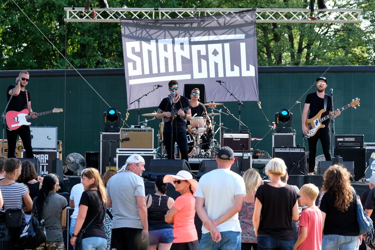 Rodiče s dětmi mohli využít dvou skákacích hradů, a tak se ani menší návštěvníci nenudili. Časový harmonogram šlapal organizátorům jako hodinky a před pátou hodinou odpolední se na pódiu objevili turnovští Snap Call. Kapela, která již téměř rok hraje s novým zpěvákem, předvedla, že se právem řadí mezi ty, na které jsme v Turnově pyšní. Její hodinový set plný rock´n´rollové muziky bavil přihlížející, kteří si v letním odpoledni přišli poslechnout muziku, dát si pivo, dobré jídlo, nebo popovídat s přáteli. Festival byl totiž i místem setkávání, a jídla i pití bylo po celou dobu dostatek.