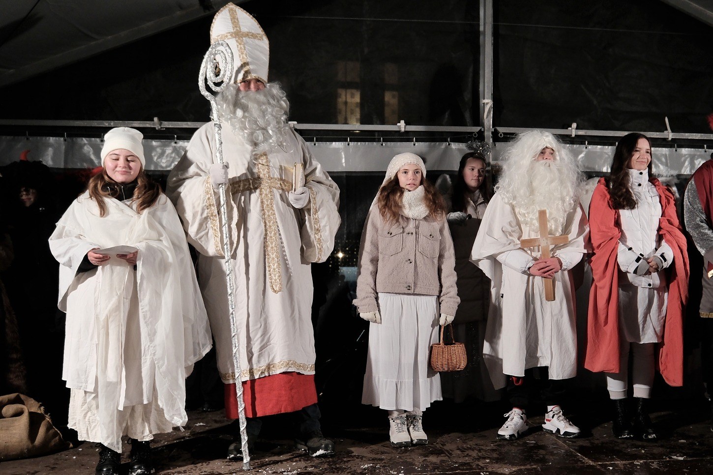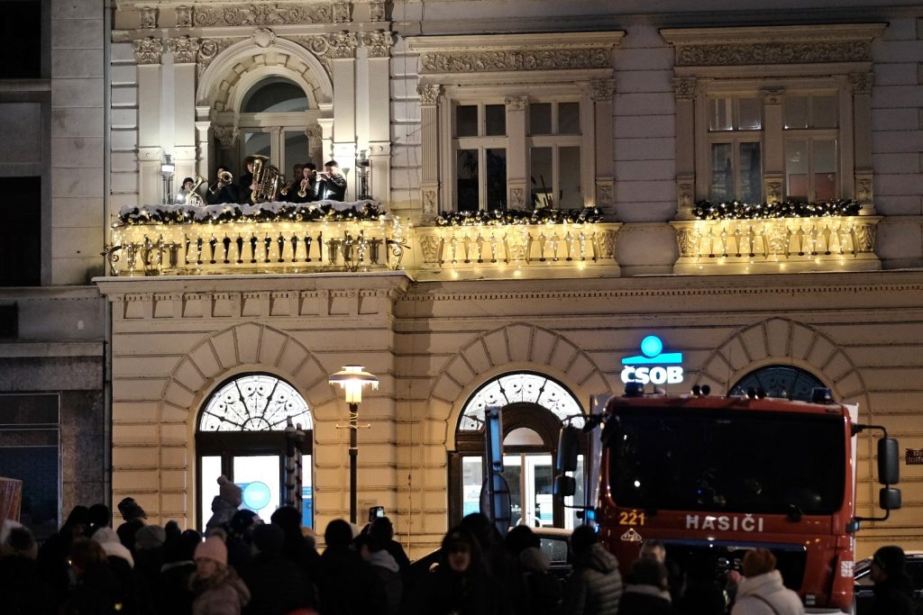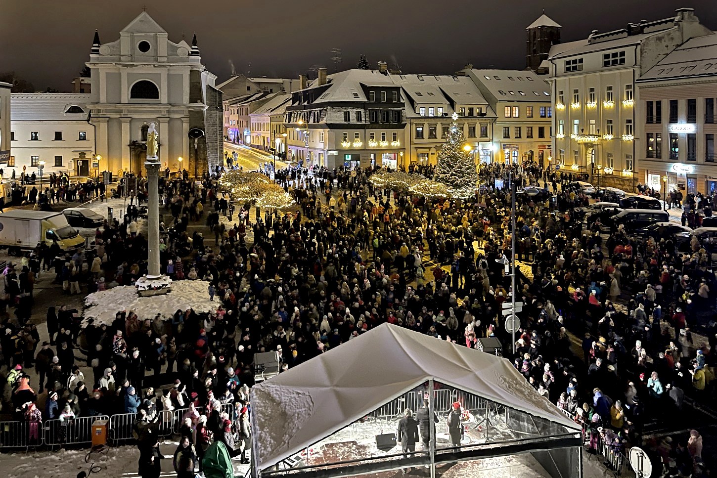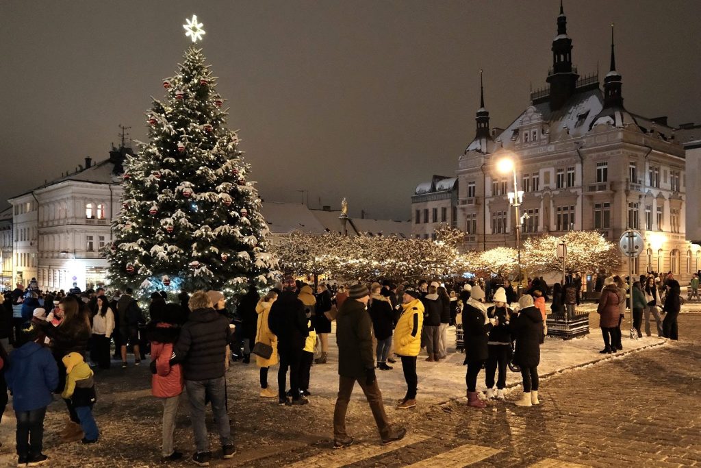 poté za přispění adventních postav ze ZŠ Žižkova v čele s Mikulášem byl slavnostně rozsvícen vánoční strom, který bude náměstí zdobit v následujících týdnech. Současně byla rozsvícena i vánoční výzdoba ve městě.