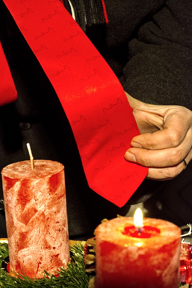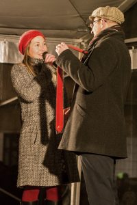 Symbolickou tečku za slavnostním rozsvícením vánočního stromu udělala na pódiu Alena Novotná z Atelieru ARTmix. „Předala jsem starostovi města kravatu s potiskem s logy města jako poděkování za prostory Uličky řemesel, ve které si můžeme plnit naše sny a sny našich zákazníků. Současně jsem mu popřála, ať se i jemu osobně v příštím roce splní nějaké osobní přání a ať naše město žije,“ uzavřela Alena Novotná.