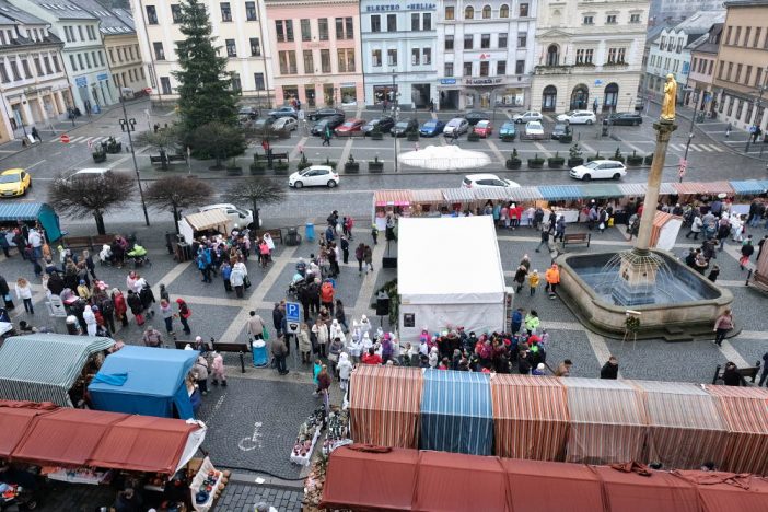 Náměstí v Turnově obklopené stánky, vůně skořice, vanilky a třeba i levandule, která se prolíná s vánočními melodiemi. Ve vzduchu poletují sněhové vločky a občas vyleze i sluníčko. Prostor pomalu zaplňují prodejci i lidé, kteří přišli nakoupit, nebo se podívat na doprovodný program. Sortiment ve stáncích je tradiční – od keramiky přes dřevěné hračky až po vánoční dobroty a stromečky. Některé stánky svým prodejem podporují charitu nebo neziskové organizace.