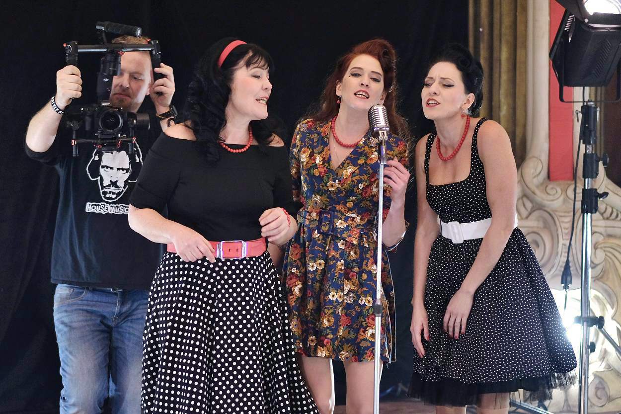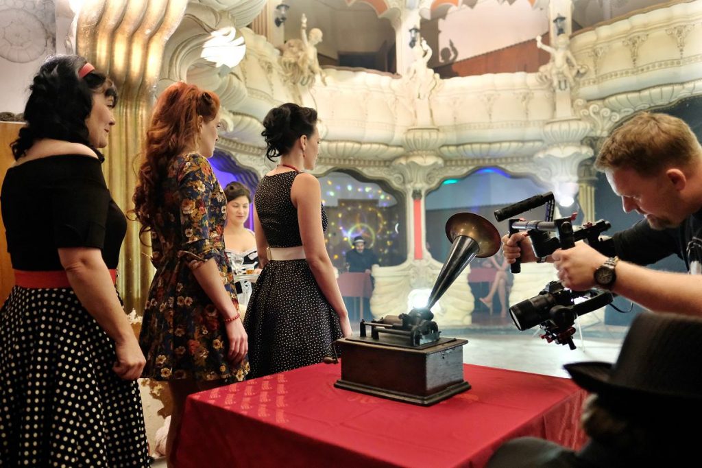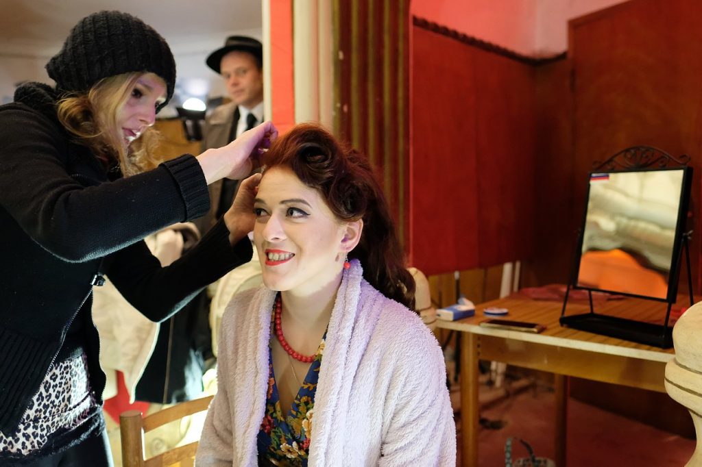 Každé natáčení je bohužel také o čekání. Protože se točilo v dobové atmosféře, kdy měly herečky vzbuzovat dojem, že vypadly z filmu ze starých časů, pomohly vizážistka Lucie Popelková a kadeřnice Eva Malíková. Celé dopoledne se tedy ladil nejen interiér prvorepublikového šantánu, který prosvítila firma MD Sound, ale také fazóna přítomných dam. I pánové ale museli vypadat k světu, takže se hodili „do gala“ a trpělivě čekali, až budou všechny ženy připravené.