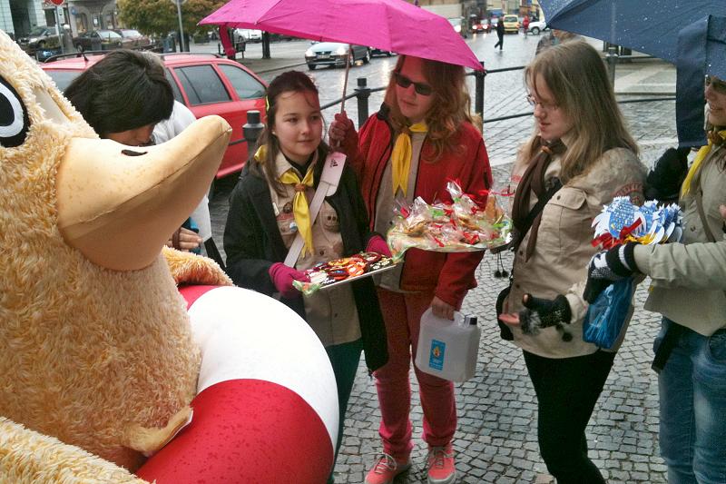 Sbírka má velkou podporu i mezi skauty samotnými, do její přípravy se zapojují všechny generace. V oddílech vyrábějí velikonoční kuřátka, zajíčky, perníčky a další dárky, které potom věnují lidem, kteří do sbírky přispějí. V turnovských ulicích většinou potkáte s velkým kuřetem, symbolem sbírky, hlavně dívčí oddíly, někdy také pár chlapců. „Letos sbírku negativně ovlivnilo páteční deštivé počasí, jinak bychom určitě vybrali víc peněz. Máme také jednu kuriozitu. Náš velký kuřecí maskot se nám zasekl v tom nejužším hrdle u zábradlí nahoře v Hluboké ulici u bufetu Granát. Nešlo to dopředu, ani zpátky. Jedni tlačili, druzí tahali. Nakonec jsme prošli, ale byla by to možná dobrá scénka do němé grotesky,“ přiblížila Pekařová.