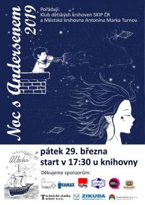 * NOC S ANDERSENEM 2019. Již 19. ročník pohádkového programu a spaní Noc s Andersenem je tady! Tentokrát je hlavním tématem Andersen známý, neznámý, spisovatel Eduard Petiška, pohádky a pověsti Českého ráje, spisovatelka Ivona Březinová. Program začíná tradičně u knihovny v Jeronýmově ulici, kde se sejdeme u stromu Pohádkovníku v 17.30 hodin, pohádkový průvod se vydá na pochod městem v 18.00 hodin. Na účastníky čeká opět sázení stromu Pohádkovníku, následuje program na náměstí Českého ráje, pohádka v divadle a program na jednotlivých spacích místech.