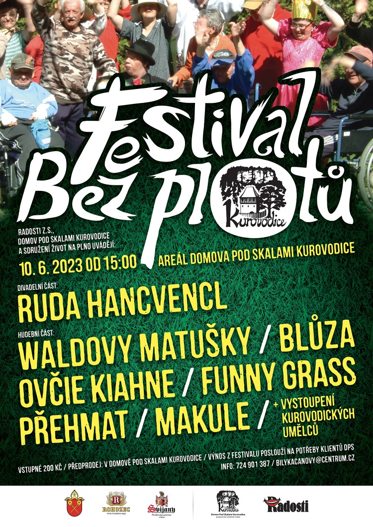* FESTIVAL BEZ PLOTŮ. Areál Domova pod skalami v Kurovodicích, začátek v 15.00 hodin. Vystoupí: Ruda Hancvencl, Waldovy Matušky, Blůza, Ovčie Kiahne, Funny Grass, Přehmat a Makule. S vlastním programem vystoupí i klienti domova.
