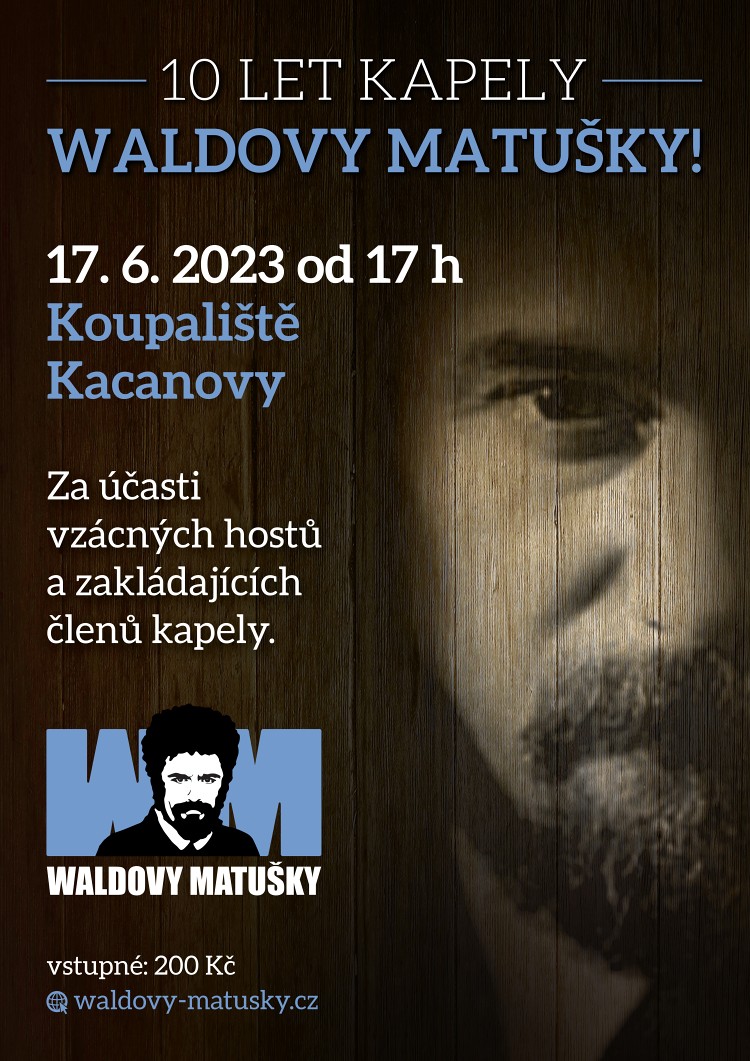 * WALDOVY MATUŠKY – 10 LET! Populární kapela slaví jubileum za účasti vzácných hostů a zakládajících členů na koupališti v Kacanovech od 17.00 hodin. Vstupné 200 Kč.