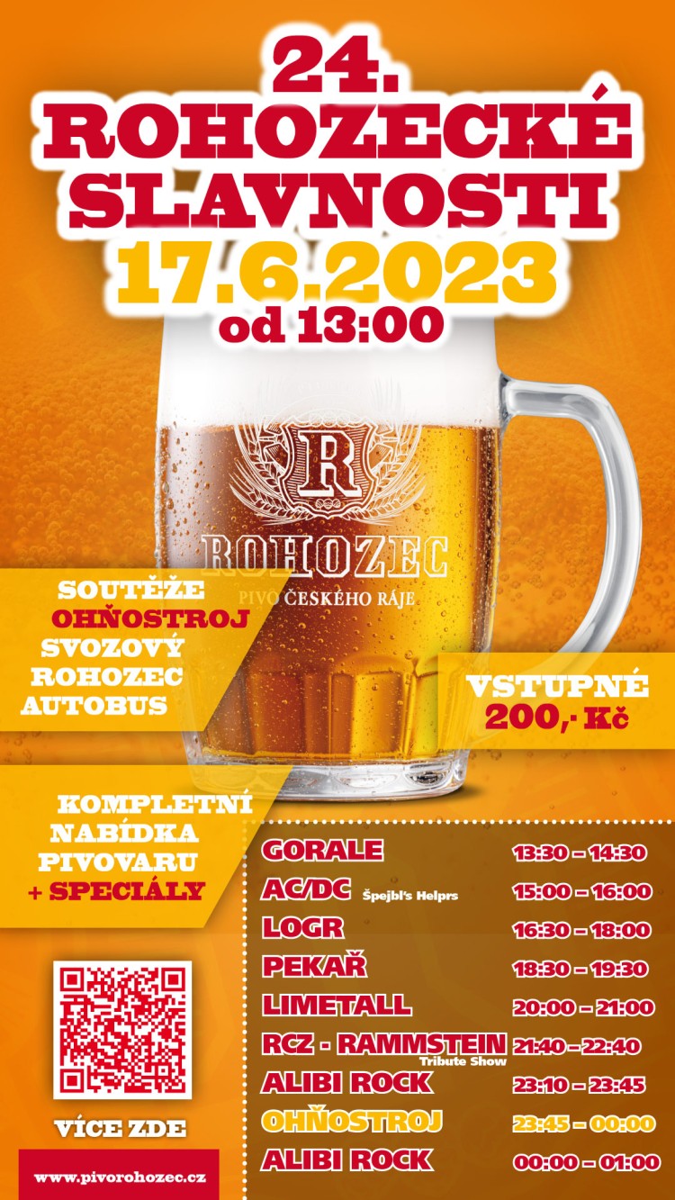 * 24. ROHOZECKÉ SLAVNOSTI. Tradiční slavnosti piva v areálu Pivovaru Rohozec. Začátek ve 13.00 hodin. Vystoupí kapely Gorale, AC/DC (Spejbl´s Helprs), Logr, Pekař, Limetall, RCZ – Rammstein, Alibi rock. Svozové autobusy, ohňostroj. Více na www.pivorohozec.cz.