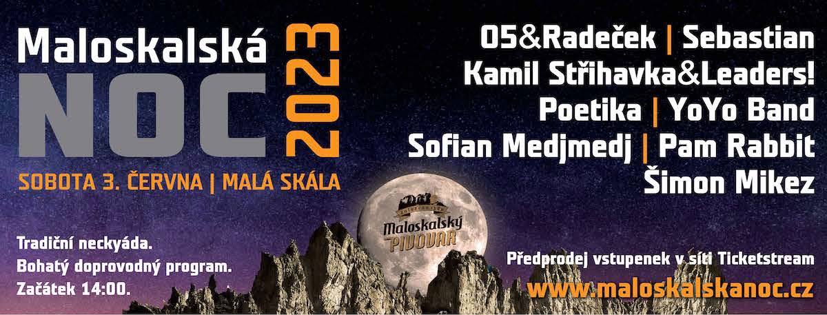 * MALOSKALSKÁ NOC. Aktuálně největší hudební festival na Turnovsku proběhne v areálu u fotbalového hřiště v Malé Skále. Program: