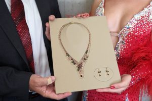 Souprava ze 14karátového zlata je osazena těmi největšími českými granáty, broušenými vltavíny a diamanty. Její hodnota představuje šestimístné číslo. Slavnostní zahájení výstavy v Grandhotelu Zlatý lev se uskuteční v pondělí v 15.00 hodin, výstava s názvem „Degustace českého granátu“ a netradičním způsobem představí práce turnovských šperkařů. Potrvá po dobu konání festivalu.