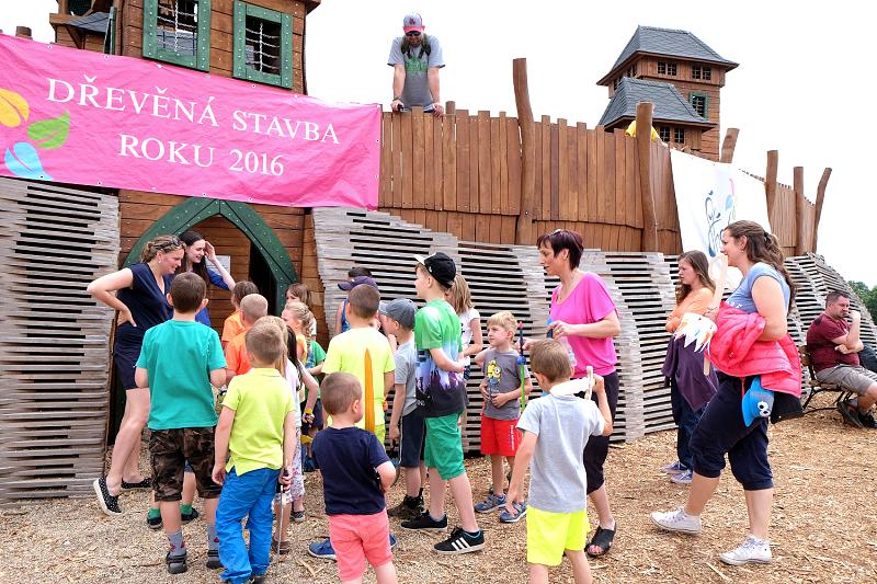 V rámci dětského dne došlo i na předání významného ocenění. Ředitel Nadace dřevo pro život Stanislav Polák předal zástupci Šťastné země cenu „Dřevěná stavba roku 2016“ v kategorii velká dětská hřiště, kterou získala replika hradu Trosky ve veřejném hlasování. Jedná se o mimořádné ocenění. Jak ředitel nadace doplnil, vloni otevřená replika hradu Trosky patří k nejpovedenějším stavbám tohoto druhu v republice. „Naše nadace byla založena před deseti lety. Jejím hlavním posláním je podpora obnovitelných surovin, zejména dřeva. My říkáme, že čím víc budeme používat obnovitelné zdroje, tak tím víc chráníme ty neobnovitelné,“ přiblížil Polák. Podle něho platí, že čím je strom starší, tím méně uhlíku absorbuje, mladý les je na tom daleko lépe. Proto máme umět dřevo více využívat v každodenním životě a současně podporovat novou výsadbu.