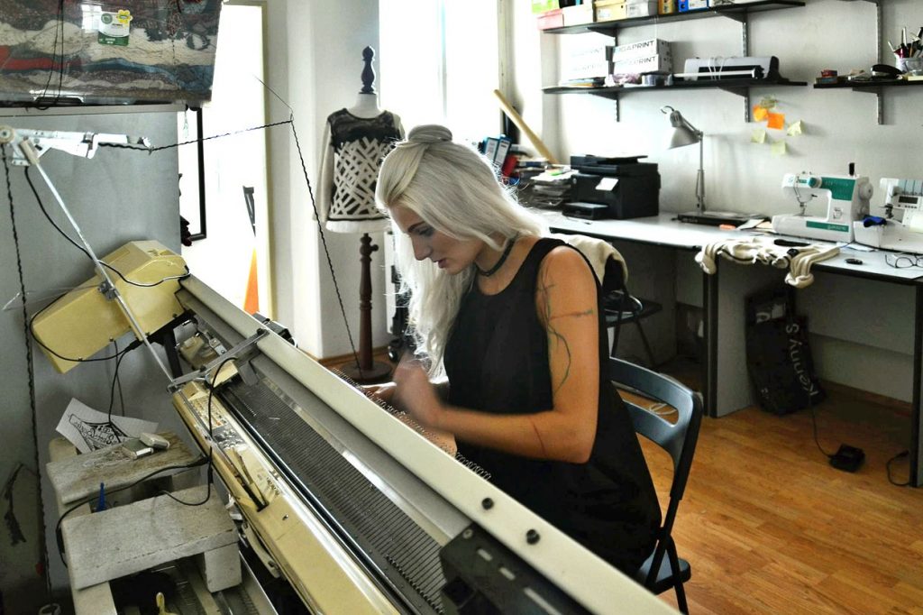 Hodně šiju a pletu na zakázku. Také jezdím po veletrzích a designových marketech. Naposledy to byla například přehlídka Design Days Reichenberg. Jezdím i do Prahy. Je to především otázka prezentace a prestiže. Zabývám se hlavně sítotiskem a abstraktní malbou na textil.