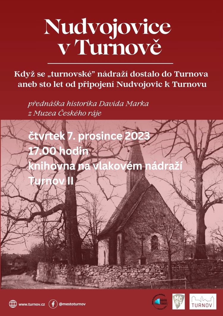 Ještě také doplňme, že ve čtvrtek 7. prosince si připomeneme 100 let od správního připojení Nudvojovic k Turnovu v historicko-fotografické přednášce Davida Marka z turnovského muzea. A pokud nevíte, co ještě vhodného pořídit k Vánocům, tak je stále možné zakoupit knihu o Turnově, která vyšla v minulém roce k výročí města – je možné ji