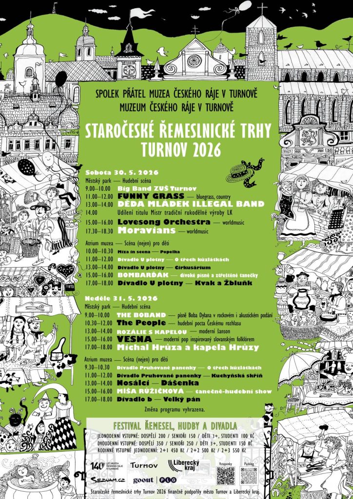 * STAROČESKÉ ŘEMESLNICKÉ TRHY TURNOV 2026. Staročeské řemeslnické trhy v Turnově jsou oslavou poctivé rukodělné práce, hudby a divadla. Každý rok přinášejí jedinečné setkání s mistry tradičních řemesel, bohatý kulturní program a nezapomenutelnou atmosféru, která láká návštěvníky z celé České republiky i zahraničí.