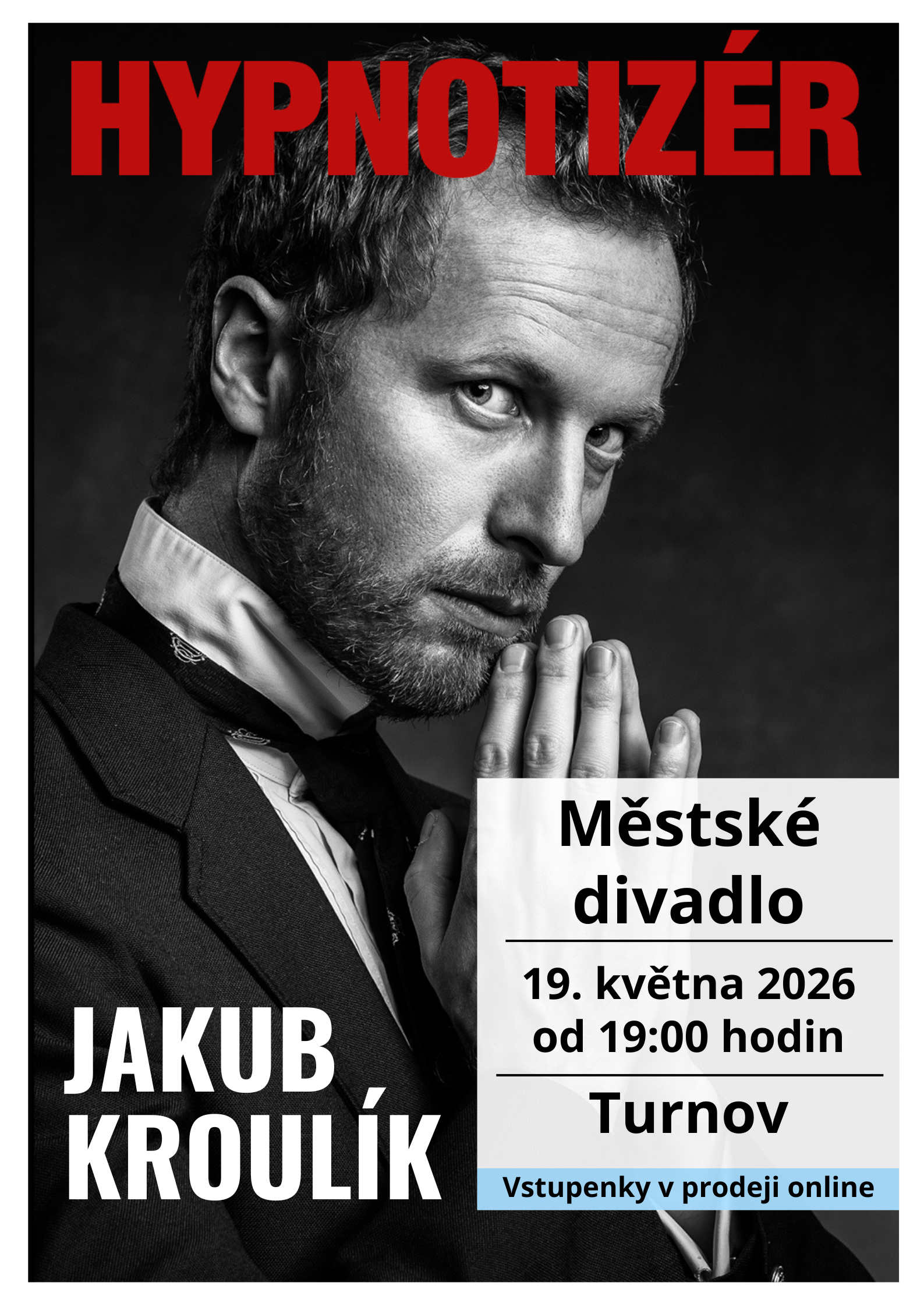 * HYPNOTIZÉR. Přijďte se uvolnit a prožít si něco velice výjimečného na představení Hypnotizér! Prožijete hluboké uvolnění svého těla i mysli. Již s příchodem hypnotizéra Jakuba Kroulíka na jeviště mohou citlivější návštěvníci představení začít pociťovat změny ve vnímání. Jakmile hypnotizér začne přenášet svou vůli na všechny návštěvníky v sále, jeho vliv začnou pociťovat všichni. I ti méně citliví, kteří si hypnózu chtějí prožít. Hypnotizér Jakub Kroulík je prvotřídním expertem na hypnózu. Jako nejlepší hypnotizér v oboru je zván coby konzultant k projektům zkoumajícím hranici mezi vědou a magií. Těmi jsou například Experiment náhoda či Investigátoři. Městské divadlo od 19.00 hodin, jednotné vstupné 590 Kč.