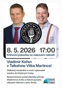 * KNIHOVORY: VLADIMÍR KOŘEN. Zábavné povídání s populárním moderátorem Vladimírem Kořenem nejen o jeho televizních pořadech, ale také o knize, kterou nedávno napsal. Akci moderuje Vítek Martinec. Knihovní pobočka na vlakovém nádraží od 17.00 hodin.
