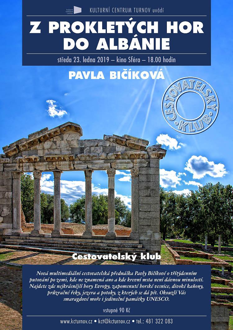 * Z PROKLETÝCH HOR DO ALBÁNIE. Multimediální cestovatelská přednáška Pavly Bičíkové o třítýdenním putování po zemi, kde ne znamená ano a kde krevní msta není dávnou minulostí. Cestovatelský klub. Kino Sféra od 18.00 hodin. Vstupné 90 Kč.