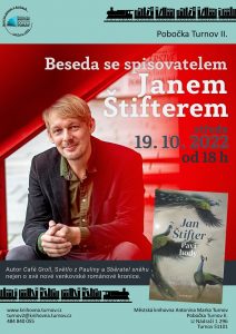 * BESEDA SE SPISOVATELEM JANEM ŠTIFTEREM. Jan Štifter (* 1984) absolvoval kulturní dějiny na Univerzitě Pardubice. Působil v redakcích MF DNES a Lidových novin, v týdeníku MF Sedmička pracoval jako šéfredaktor. V roce 2013 založil lifestylový magazín Barbar! Za román Sběratel sněhu získal řadu ocenění, včetně Ceny čtenářů České knihy, novelu Café Groll adaptovalo Jihočeské divadlo. Ve Vyšehradu vydal též knihu povídek Světlo z Pauliny a venkovskou románovou kroniku Paví hody. Vedle prózy se věnuje odborným textům především z oblasti nejjižnějších Čech. V Trhových Svinech organizuje literární festival Svinenské čtení. Knihovna na vlakovém nádraží Turnov II od 18.00 hodin.