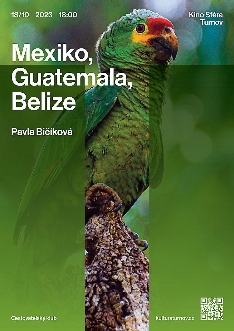 * PAVLA BIČÍKOVÁ: MEXIKO, GUATEMALA, BELIZE. Uprostřed džungle plné řvoucích opic a pestrobarevných ptáků objevíme mayské chrámy a pyramidy. Projdeme mlžnými pralesy, vystoupáme na sopky a budeme pozorovat lávu chrlící vulkán Fuego. Cestovatelský klub, Kino Sféra na Střelnici od 18.00 hodin.