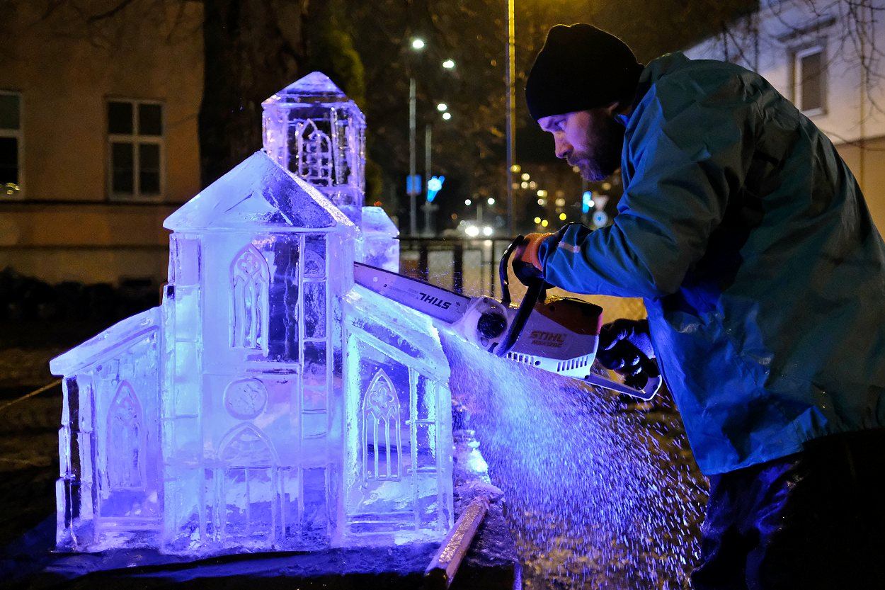 Tvorba ledové sochy vzbudila v minulém roce velký zájem. Tehdy sochař tvořil zmenšeninu turnovského kostela P. Marie. Pomocí elektrické pily, dlát, pilek, řezáků a dalšího speciálního náčiní během několika hodiny vytvořil ledovou sochu, kterou návštěvníci ještě dlouho poté obdivovali. „Socha vydrží několik dní. Samozřejmě záleží na počasí. Pokud by mrzlo, vydrží i déle,” říká Martin Zvoníček, spoluorganizátor happeningu.