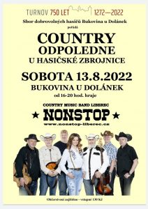 * COUNTRY ODPOLEDNE s kapelou NONSTOP z Liberce. Bukovina u Dolánek od 16.00 do 20.00 hodin. Občerstvení zajištěno, vstupné 130 Kč. Pořádá SDH Bukovina u Dolánek.