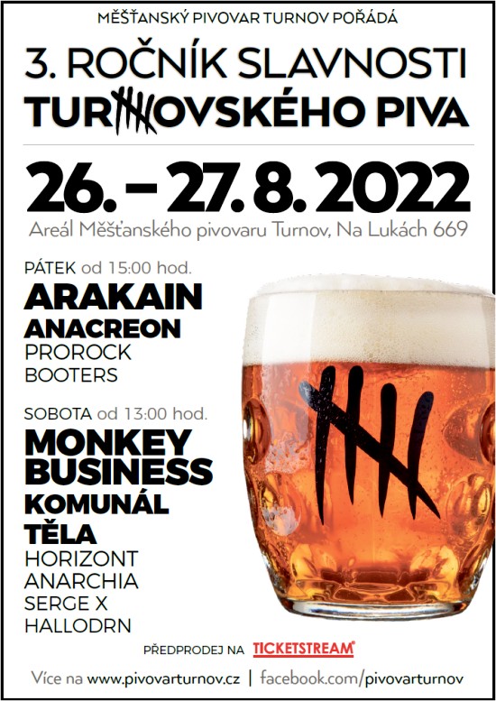 Předprodej vstupenek na Ticketstream, více na www.pivovarturnov.cz.