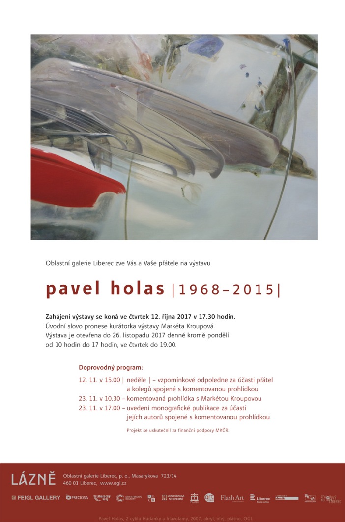Od 12. října liberecká galerie představuje průřez tvorbou malíře a pedagoga Akademie výtvarných umění v Praze Pavla Holase. Ve velmi soustředěném výběru jeho obrazů nalezneme všechny polohy jeho tvorby, které v logickém sledu navazovaly jedna na druhou. V naprosté většině hrála dominantní roli voda a vodní prostředí ať už přírodní nebo umělé, iluzivní malba a bohatá barevnost. Autor spjatý s Ateliérem klasických malířských technik prof. Zdeňka Berana, jako student a jako jeho asistent, se řadí mezi nejdůležitější malíře tohoto směru posledních dvaceti let.