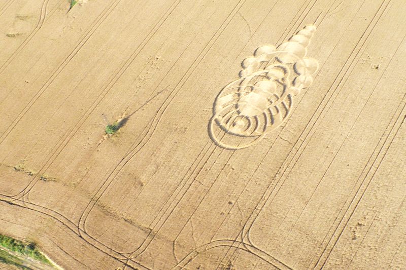 Je to tak, tento agrosymbol, který některým připomíná brouka, jiným nějaký reliéf spojený s východními filozofiemi, je výletním magnetem těchto dnů v našem regionu. Navíc mu zbývá jen pár posledních dnů, či hodin života, protože žně jsou v plném proudu a pole bude brzy pokoseno. Podle znalců jde o nejkrásnější a nejdokonalejší obrazec, zdokumentovaný v uplynulých 42 letech v České republice. Snímky pořízené z rogalla 1. srpna do redakce TvA zaslal Bohuslav Šulc (děkujeme).