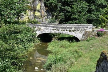 Historický, obloukový kamenný most z pískovce klenoucí se přes řeku Žehrovku – to je Podsemínský most mezi obcemi Libošovice a…