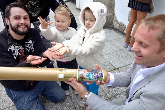 Nejen výtěžek ze srpnového Benefičního koncertu pro Andulku na hradě Trosky (ZDE) si v úterý 12. září v Děčíně převzala rodina vážně nemocné čtyřleté holčičky. Aby rozveselil děvčátku dětský pokojíček, přidal k rekordní sumě 52.405 Kč z koncertu náměstek hejtmana Pavel Svoboda pohádkovou obří fototapetu Příšerky na univerzitě. Radovala se z ní jak Andulka, tak i její mladší sestřička Terezka.