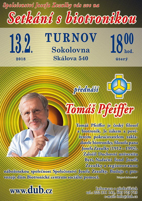 * SETKÁNÍ S BIOTRONIKEM TOMÁŠEM PFEIFFEREM. Sokolovna ve Skálově ulici od 18.00 hodin. Více na www.dub.cz.