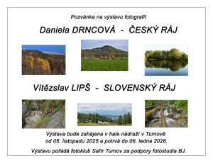 – Výstava v nádražní hale: DANIELA DRNCOVÁ – Český ráj, VÍTĚZSLAV LIPŠ – Slovenský ráj. Výstava potrvá do 6. ledna 2026.