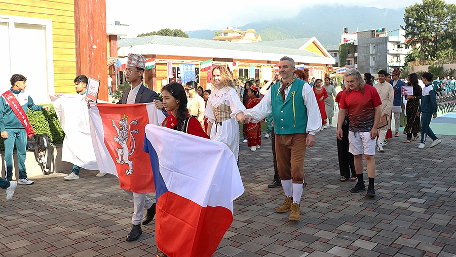 Za doprovodu státních praporů prošli účastníci městem až do školního kampusu, kde proběhlo slavnostní zahájení. Zazněla česká i slovenská hymna a následovala vystoupení nepálských kapel. Večer Pasang přinesl slibovanou tombu a česká i slovenská část výpravy strávila první společný večer v místním „pivovaru“.