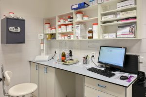 Součástí lékárny je také kancelář, kam se dovoláte při objednání léků. Lékárník vám zde poradí a zároveň zde probíhají veškeré objednávky i e-mailová komunikace.