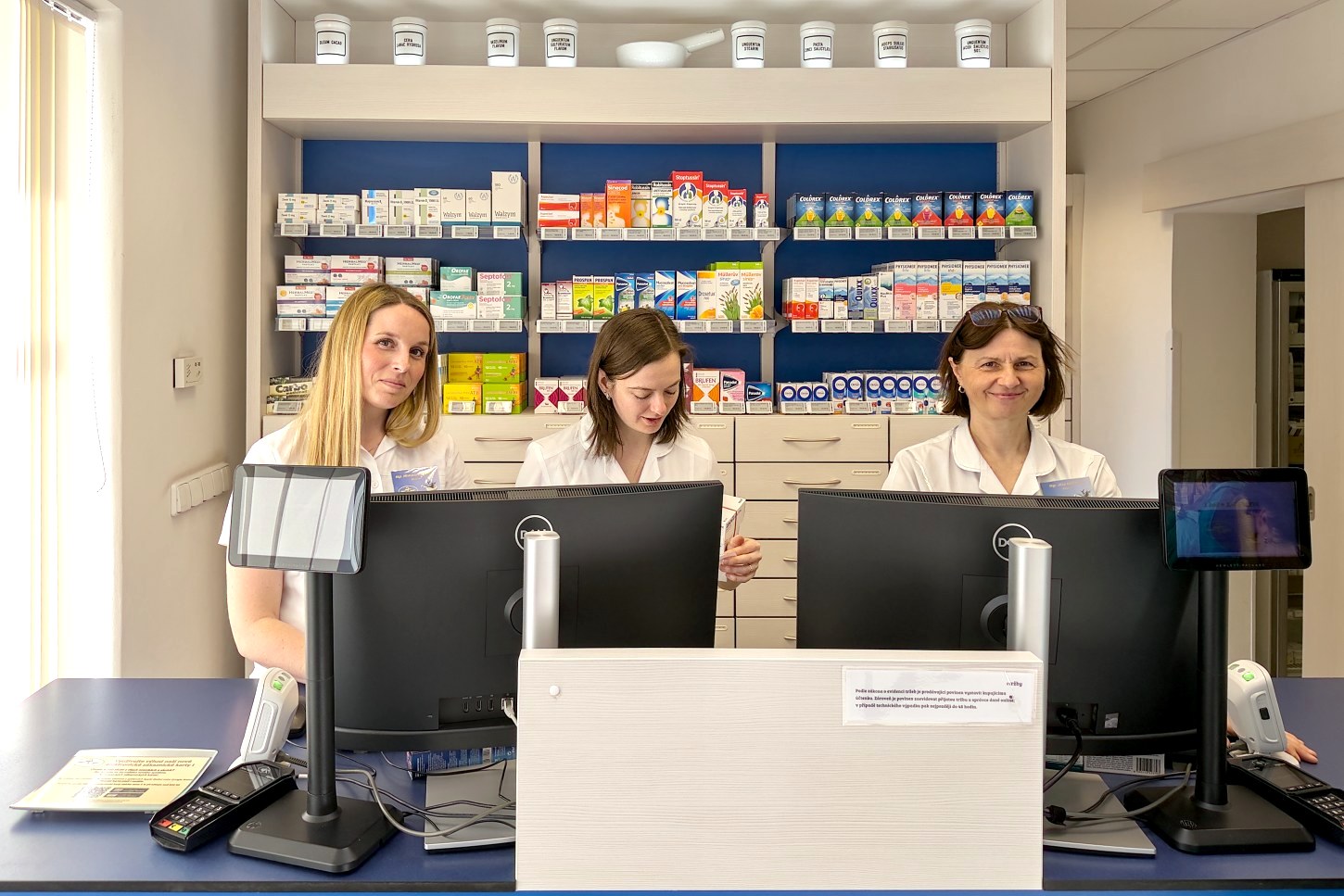V lékárně se vždy setkáte s odborně vzdělaným personálem – u výdeje na recept s vysokoškolsky vzdělaným farmaceutem, u volného prodeje s farmaceutickým laborantem.